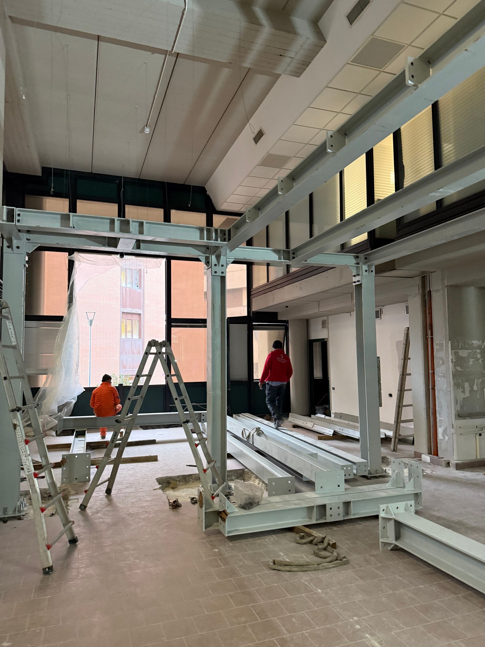 Descrizione: Adeguamento sismico Palazzo Raffaello - Fase di posa trave in copertura